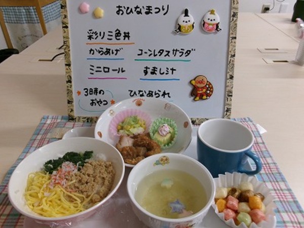 下の写真は「ひなまつり」の日の献立です!