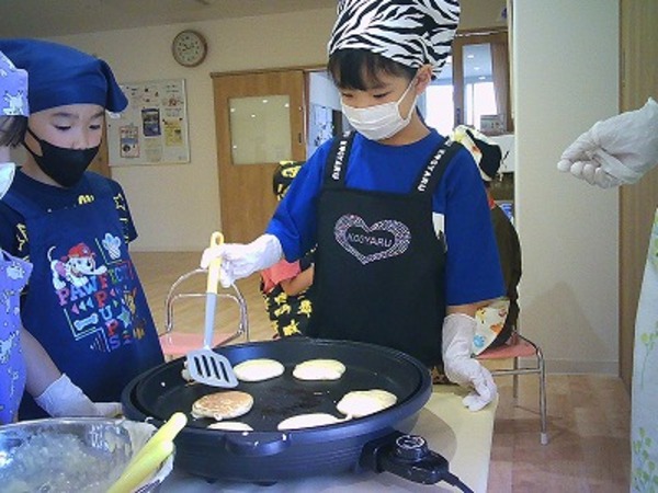 自園の調理室で毎日手作りの給食を提供しています。3〜5歳児も主食の提供が始まり、全園児「完全給食」です。