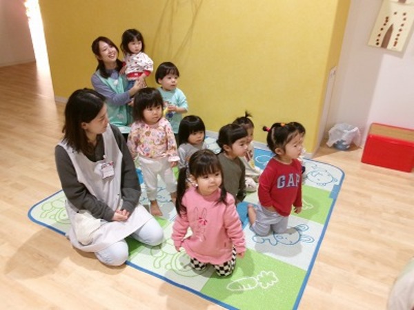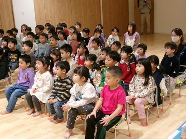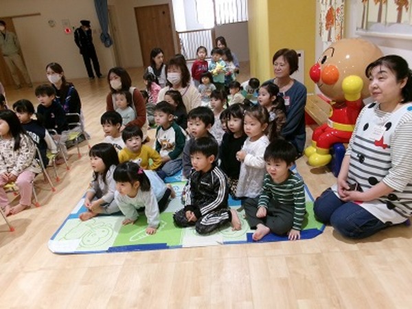 アンパンマンの紙芝居をみる2歳児ちゅうりっぷ組