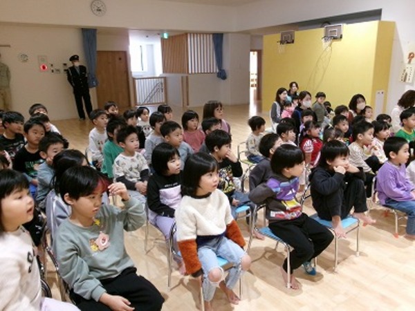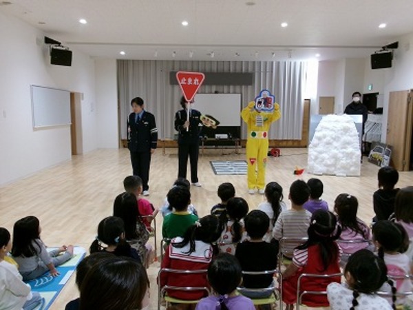 毎年、春と冬に開催している「市の交通安全教室」。市の危機対策室の方と交通指導員の皆さんが来園してくれ、交通ルールをわかりやすく教えてくれます。普段は車での生活が多く街中を歩くことが減ったと感じますが、幼少期にしっかりと交通ルールを学ぶことは大切なことです。信号の見方や標識など子どもたちが目で見てわかりやすいように様々な手作りグッズを使い、今回は「しんちゃん」という子ども役を演じながら一緒に学ぶ演出をしてくださいました!ただお話を聞いているだけではないため、子どもたちも引き込まれつつ「赤は止まる!」「黄色は渡ったらだめ!」など元気よく答え、楽しみながら学ぶことができました。交通指導員さんの手作りグッズはどれもすばらしく、改めて「視覚アイテム」を使うことが子どもたちの学習意欲につながることを感じます(*^-^*)これから冬になり、冬ならではの交通事故も発生しますので、皆様も十分気をつけて交通ルールを守って安全にお過ごしくださいね!